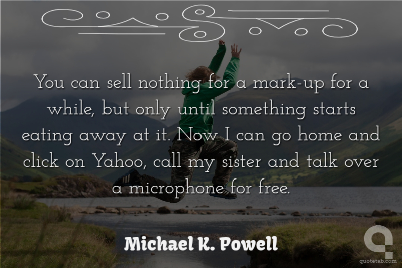 You can sell nothing for a mark-up for a while, but only until something starts eating away at it. Now I can go home and click on Yahoo, call my sister and talk over a microphone for free.