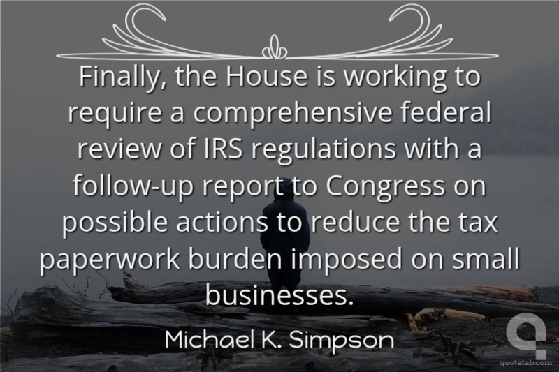 Finally, the House is working to require a comprehensive federal review of IRS regulations with a follow-up report to Congress on possible actions to reduce the tax paperwork burden imposed on small businesses.