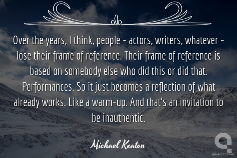 Over the years, I think, people - actors, writers, whatever - lose their frame of reference. Their frame of reference is based on somebody else who did this or did that. Performances. So it just becomes a reflection of what already works. Like a warm-up. And that's an invitation to be inauthentic.