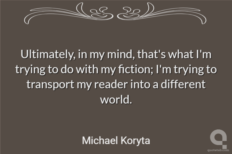Ultimately, in my mind, that's what I'm trying to do with my fiction; I'm trying to transport my reader into a different world.