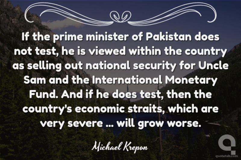 If the prime minister of Pakistan does not test, he is viewed within the country as selling out national security for Uncle Sam and the International Monetary Fund. And if he does test, then the country's economic straits, which are very severe ... will grow worse.
