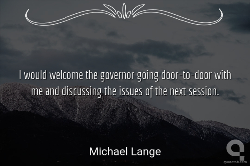 I would welcome the governor going door-to-door with me and discussing the issues of the next session.