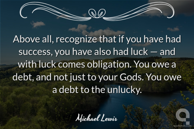Above all, recognize that if you have had success, you have also had luck — and with luck comes obligation. You owe a debt, and not just to your Gods. You owe a debt to the unlucky.