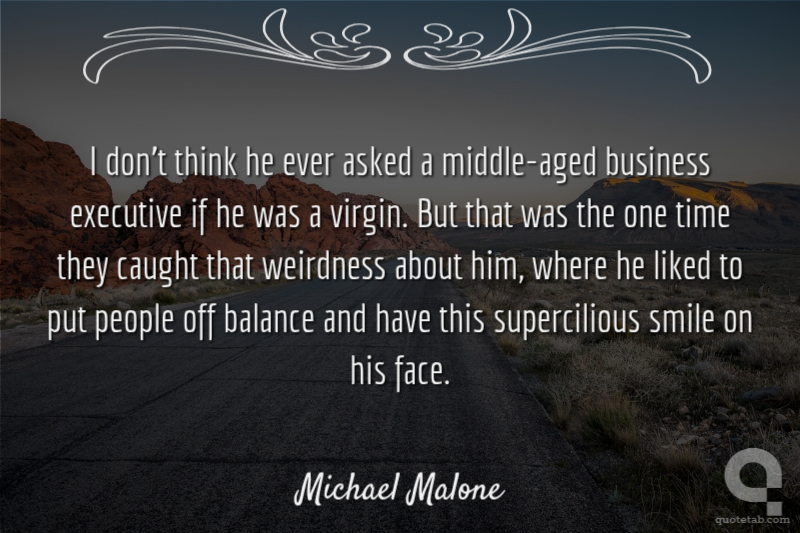 I don't think he ever asked a middle-aged business executive if he was a virgin. But that was the one time they caught that weirdness about him, where he liked to put people off balance and have this supercilious smile on his face.
