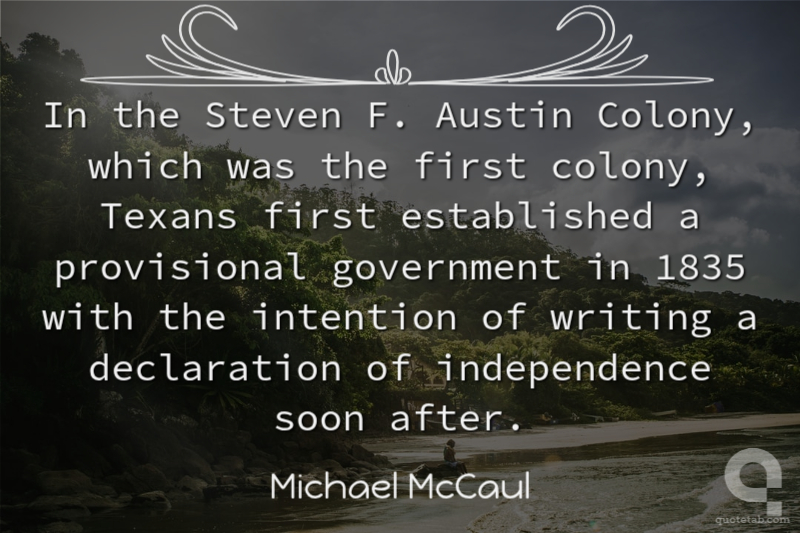 In the Steven F. Austin Colony, which was the first colony, Texans first established a provisional government in 1835 with the intention of writing a declaration of independence soon after.