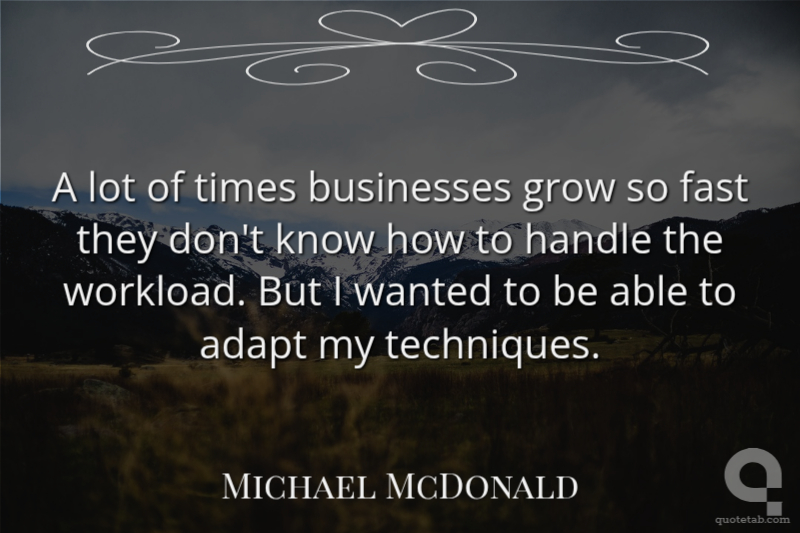 A lot of times businesses grow so fast they don't know how to handle the workload. But I wanted to be able to adapt my techniques.