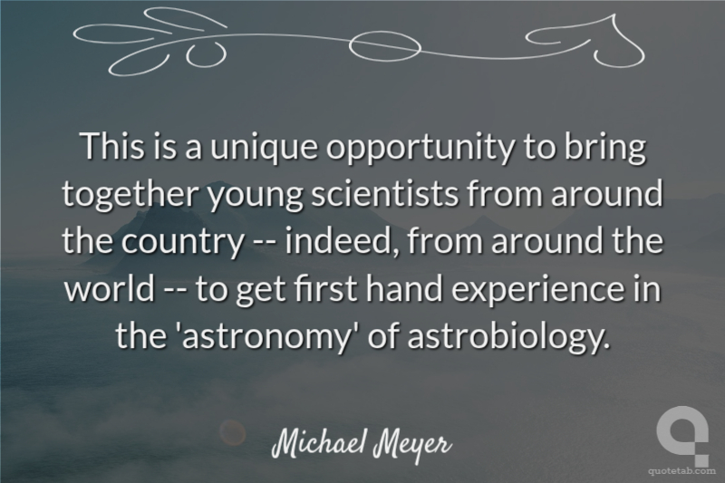 This is a unique opportunity to bring together young scientists from around the country -- indeed, from around the world -- to get first hand experience in the 'astronomy' of astrobiology.
