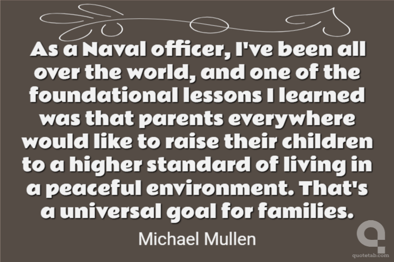 As a Naval officer, I've been all over the world, and one of the foundational lessons I learned was that parents everywhere would like to raise their children to a higher standard of living in a peaceful environment. That's a universal goal for families.