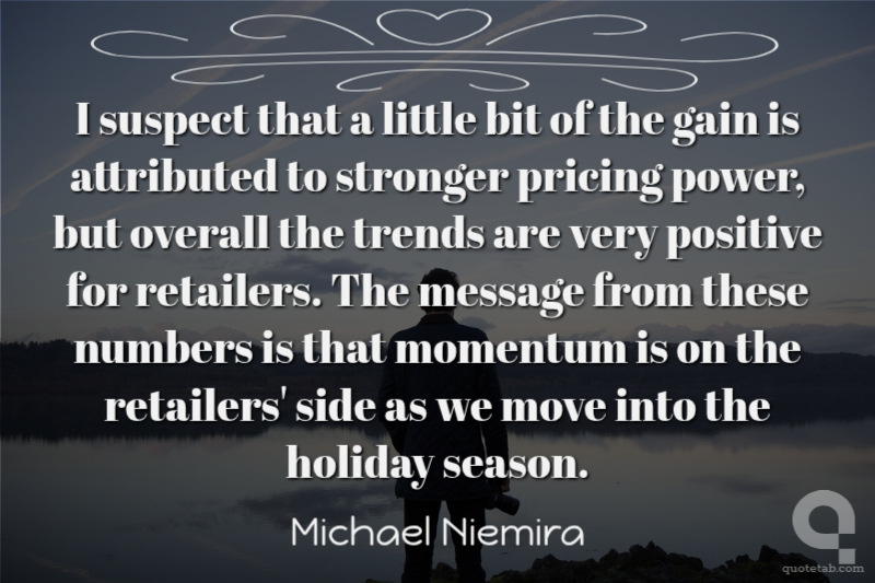 I suspect that a little bit of the gain is attributed to stronger pricing power, but overall the trends are very positive for retailers. The message from these numbers is that momentum is on the retailers' side as we move into the holiday season.