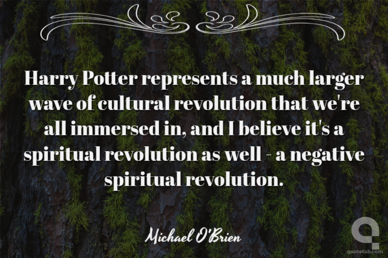 Harry Potter represents a much larger wave of cultural revolution that we're all immersed in, and I believe it's a spiritual revolution as well - a negative spiritual revolution.