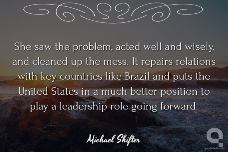 She saw the problem, acted well and wisely, and cleaned up the mess. It repairs relations with key countries like Brazil and puts the United States in a much better position to play a leadership role going forward.