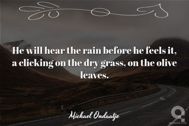 He will hear the rain before he feels it, a clicking on the dry grass, on the olive leaves.