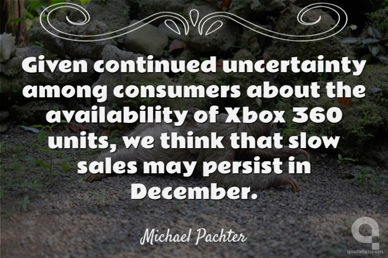 Given continued uncertainty among consumers about the availability of Xbox 360 units, we think that slow sales may persist in December.