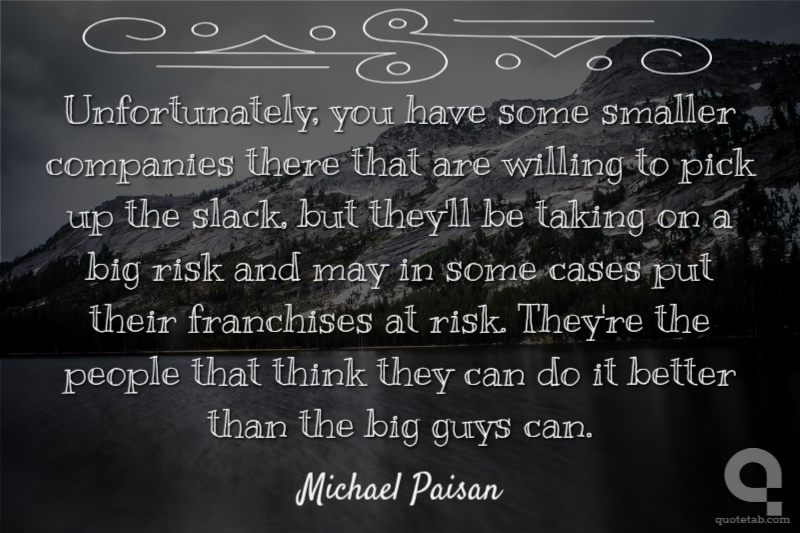Unfortunately, you have some smaller companies there that are willing to pick up the slack, but they'll be taking on a big risk and may in some cases put their franchises at risk. They're the people that think they can do it better than the big guys can.