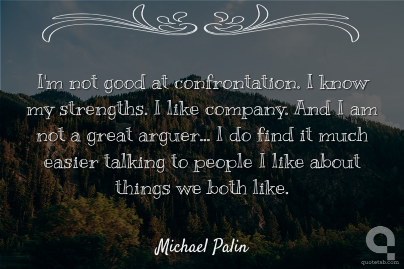 I'm not good at confrontation. I know my strengths. I like company. And I am not a great arguer... I do find it much easier talking to people I like about things we both like.