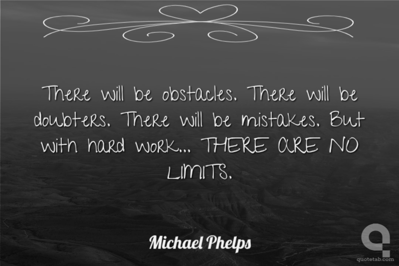 There will be obstacles. There will be doubters. There will be mistakes. But with hard work... THERE ARE NO LIMITS.