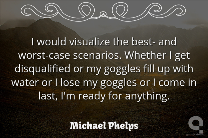 I would visualize the best- and worst-case scenarios. Whether I get disqualified or my goggles fill up with water or I lose my goggles or I come in last, I'm ready for anything.
