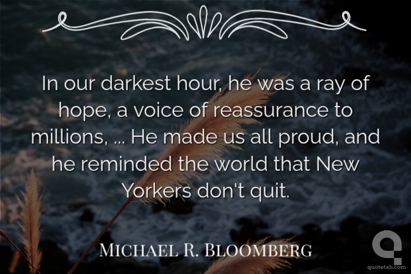 In our darkest hour, he was a ray of hope, a voice of reassurance to millions, ... He made us all proud, and he reminded the world that New Yorkers don't quit.
