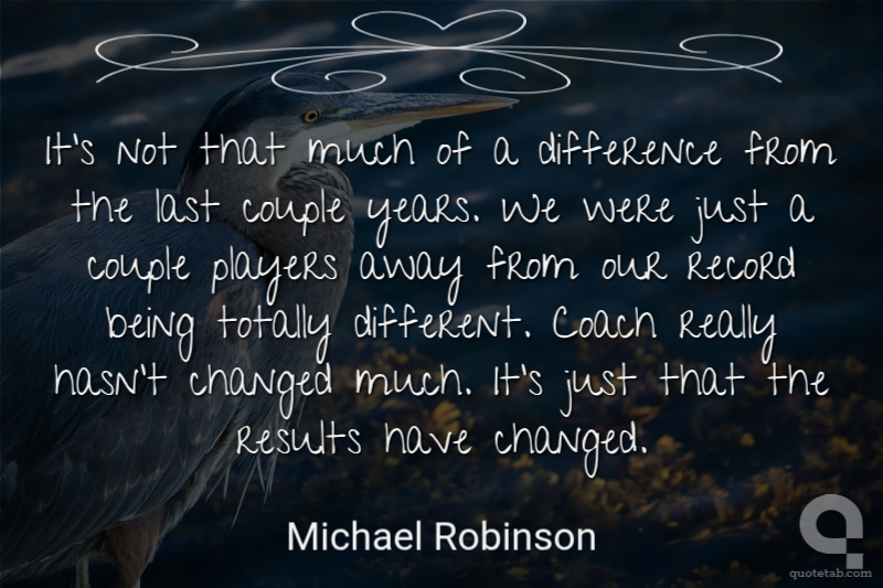 It's not that much of a difference from the last couple years. We were just a couple players away from our record being totally different. Coach really hasn't changed much. It's just that the results have changed.