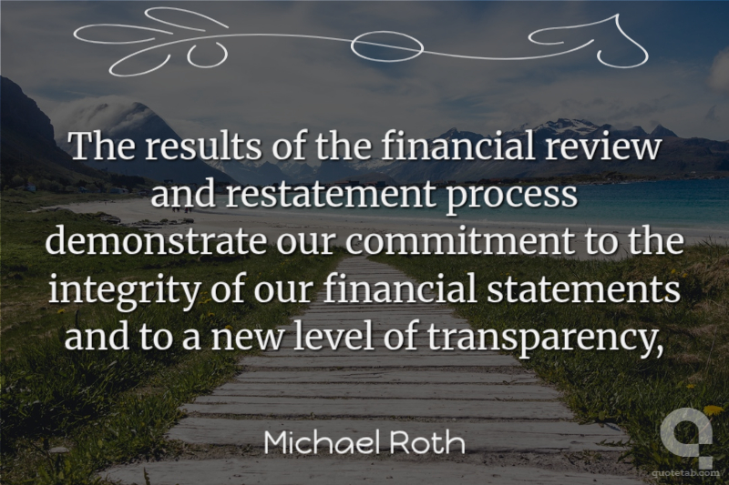 The results of the financial review and restatement process demonstrate our commitment to the integrity of our financial statements and to a new level of transparency,