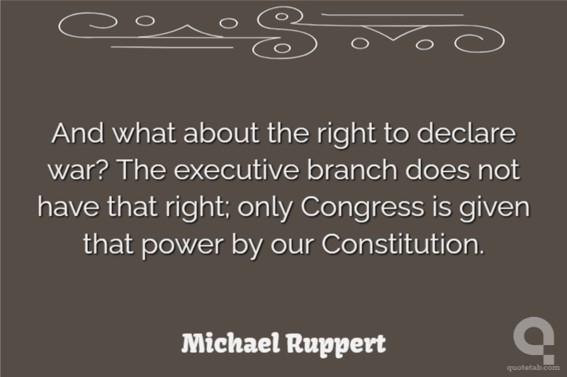 And what about the right to declare war? The executive branch does not have that right; only Congress is given that power by our Constitution.