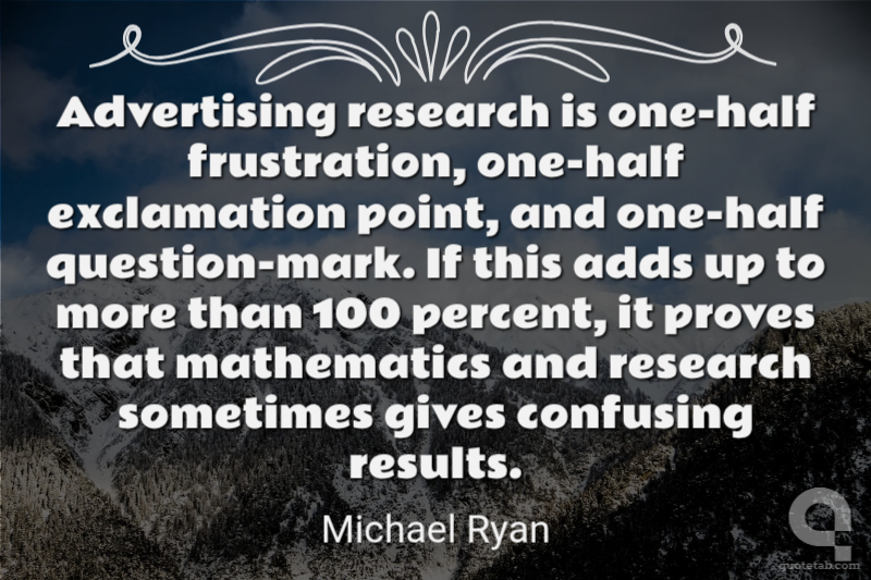Advertising research is one-half frustration, one-half exclamation point, and one-half question-mark. If this adds up to more than 100 percent, it proves that mathematics and research sometimes gives confusing results.