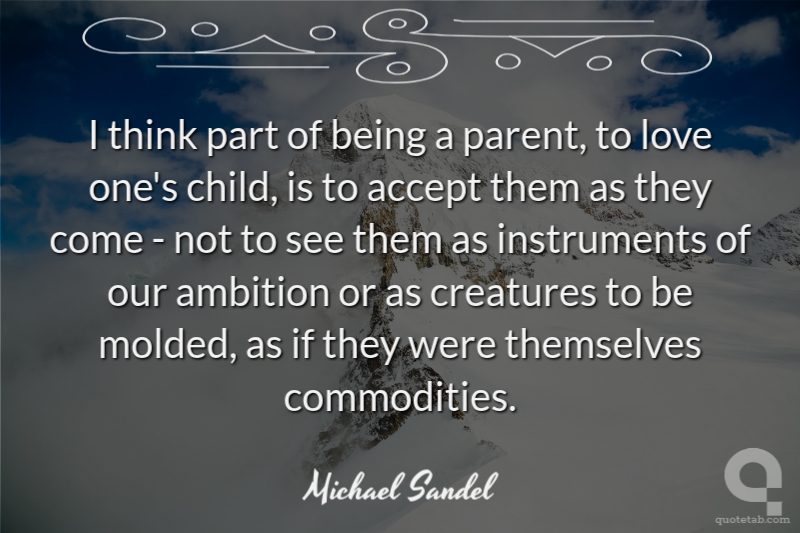 I think part of being a parent, to love one's child, is to accept them as they come - not to see them as instruments of our ambition or as creatures to be molded, as if they were themselves commodities.
