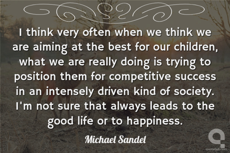 I think very often when we think we are aiming at the best for our children, what we are really doing is trying to position them for competitive success in an intensely driven kind of society. I'm not sure that always leads to the good life or to happiness.