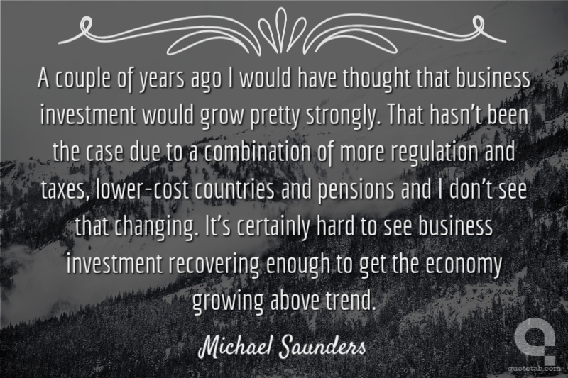 A couple of years ago I would have thought that business investment would grow pretty strongly. That hasn't been the case due to a combination of more regulation and taxes, lower-cost countries and pensions and I don't see that changing. It's certainly hard to see business investment recovering enough to get the economy growing above trend.