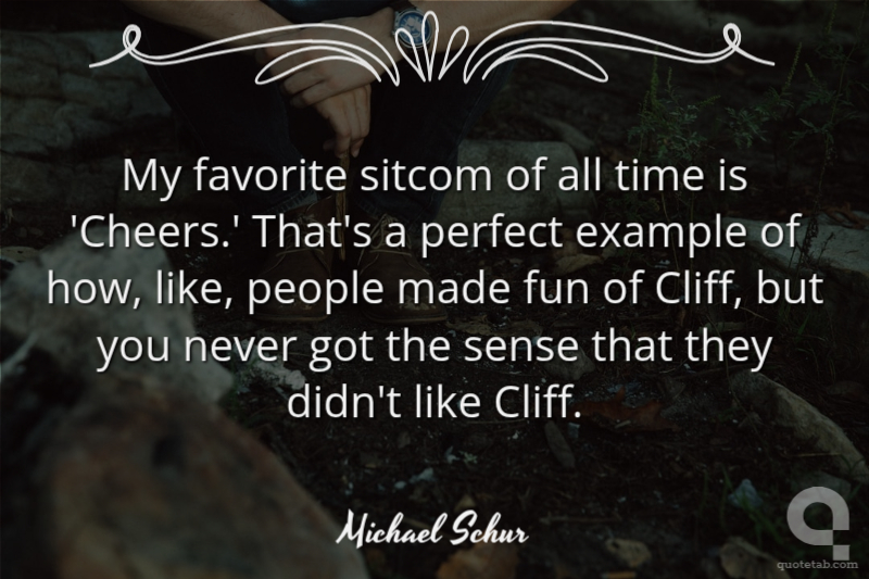 My favorite sitcom of all time is 'Cheers.' That's a perfect example of how, like, people made fun of Cliff, but you never got the sense that they didn't like Cliff.