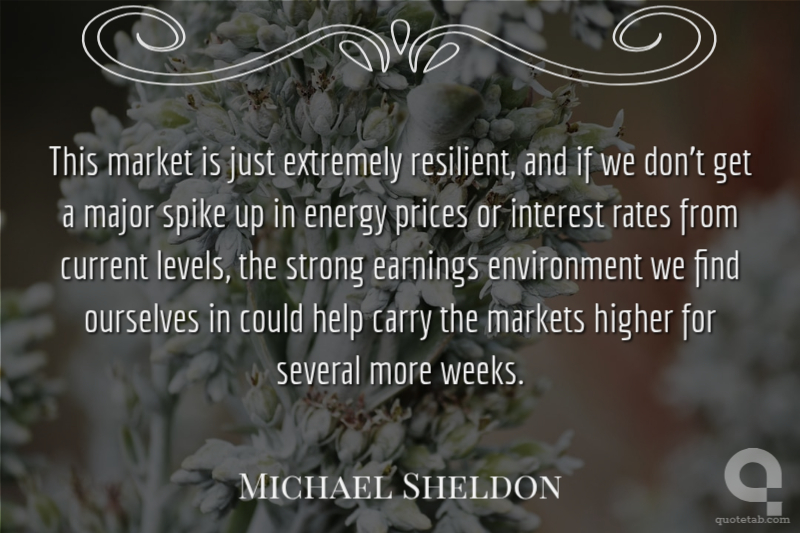 This market is just extremely resilient, and if we don't get a major spike up in energy prices or interest rates from current levels, the strong earnings environment we find ourselves in could help carry the markets higher for several more weeks.