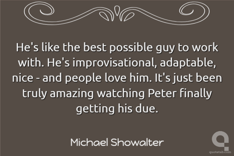 He's like the best possible guy to work with. He's improvisational, adaptable, nice - and people love him. It's just been truly amazing watching Peter finally getting his due.