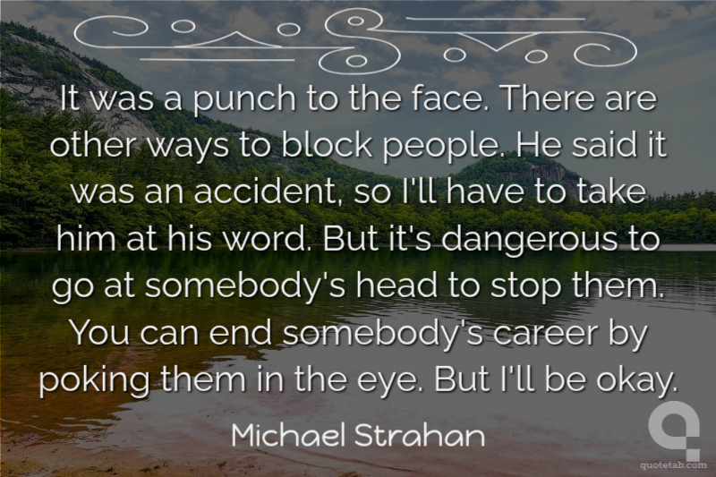 It was a punch to the face. There are other ways to block people. He said it was an accident, so I'll have to take him at his word. But it's dangerous to go at somebody's head to stop them. You can end somebody's career by poking them in the eye. But I'll be okay.