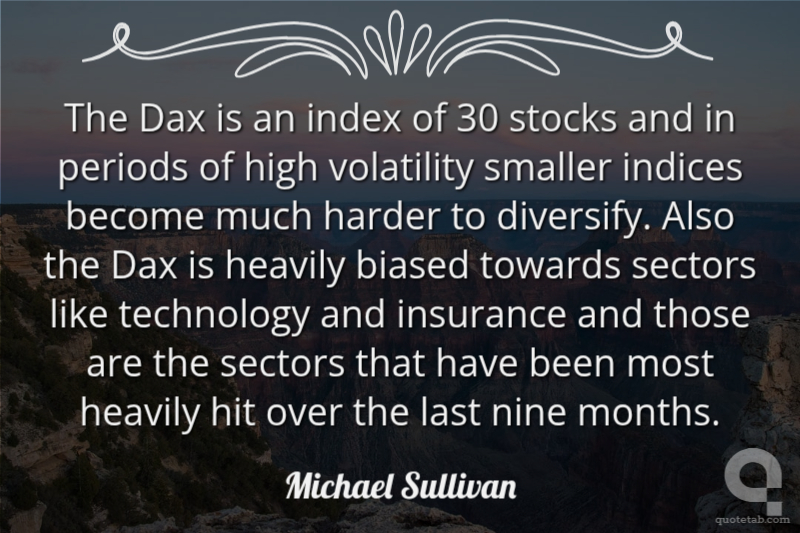 The Dax is an index of 30 stocks and in periods of high volatility smaller indices become much harder to diversify. Also the Dax is heavily biased towards sectors like technology and insurance and those are the sectors that have been most heavily hit over the last nine months.