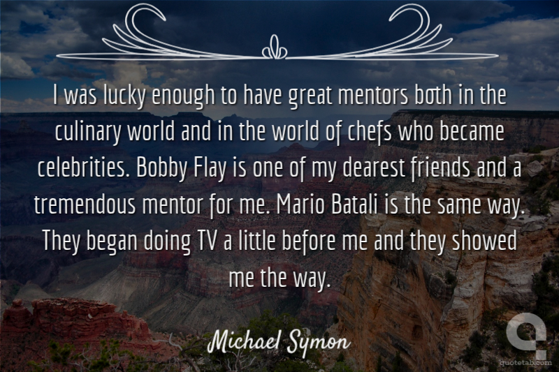 I was lucky enough to have great mentors both in the culinary world and in the world of chefs who became celebrities. Bobby Flay is one of my dearest friends and a tremendous mentor for me. Mario Batali is the same way. They began doing TV a little before me and they showed me the way.