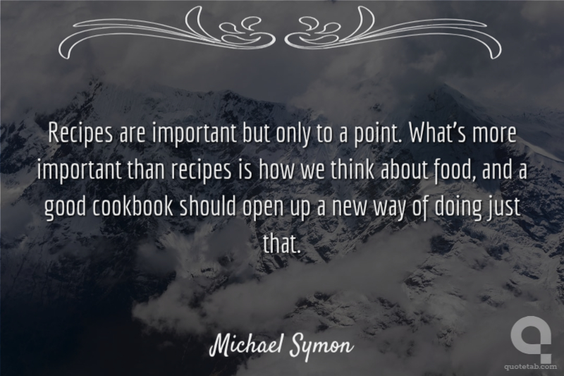 Recipes are important but only to a point. What's more important than recipes is how we think about food, and a good cookbook should open up a new way of doing just that.