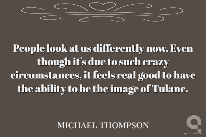 People look at us differently now, ... Even though it's due to such crazy circumstances, it feels real good to have the ability to be the image of Tulane.