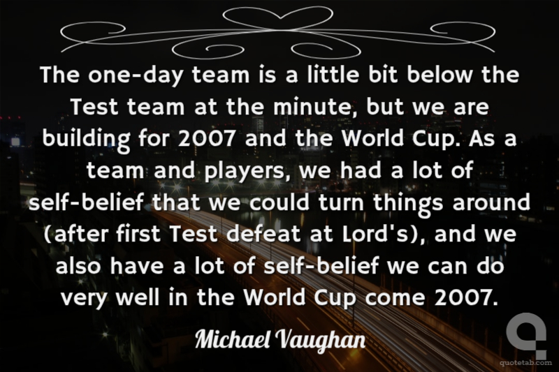 The one-day team is a little bit below the Test team at the minute, but we are building for 2007 and the World Cup. As a team and players, we had a lot of self-belief that we could turn things around (after first Test defeat at Lord's), and we also have a lot of self-belief we can do very well in the World Cup come 2007.