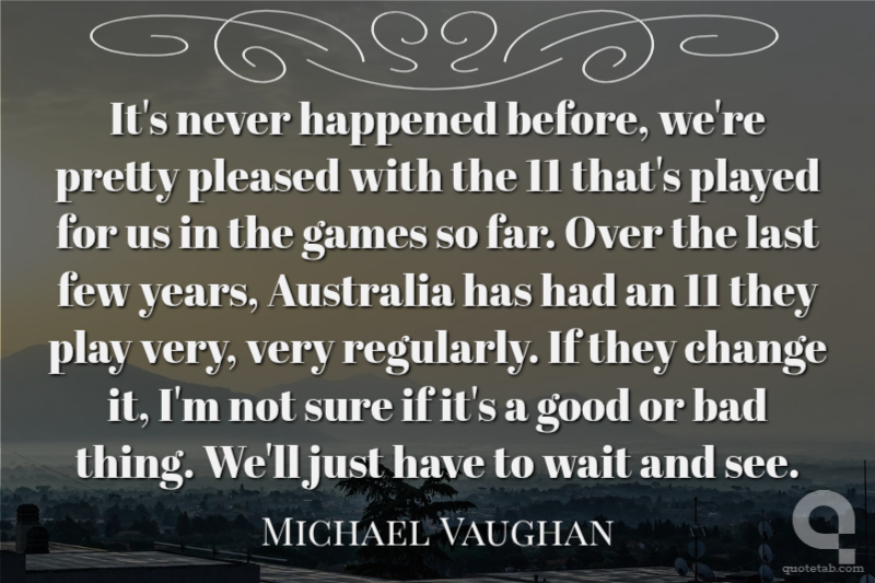 It's never happened before, we're pretty pleased with the 11 that's played for us in the games so far. Over the last few years, Australia has had an 11 they play very, very regularly. If they change it, I'm not sure if it's a good or bad thing. We'll just have to wait and see.
