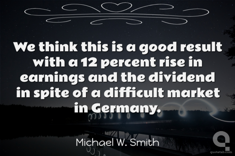 We think this is a good result with a 12 percent rise in earnings and the dividend in spite of a difficult market in Germany.