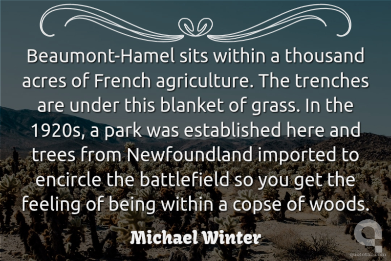 Beaumont-Hamel sits within a thousand acres of French agriculture. The trenches are under this blanket of grass. In the 1920s, a park was established here and trees from Newfoundland imported to encircle the battlefield so you get the feeling of being within a copse of woods.