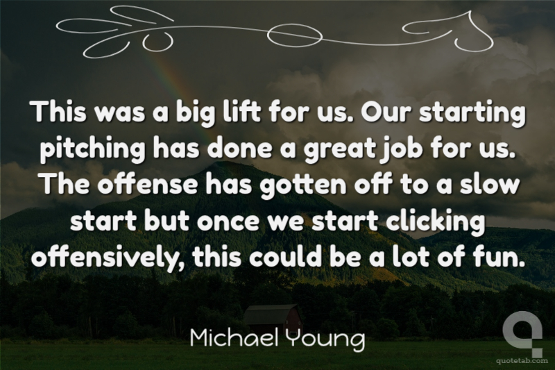 This was a big lift for us. Our starting pitching has done a great job for us. The offense has gotten off to a slow start but once we start clicking offensively, this could be a lot of fun.