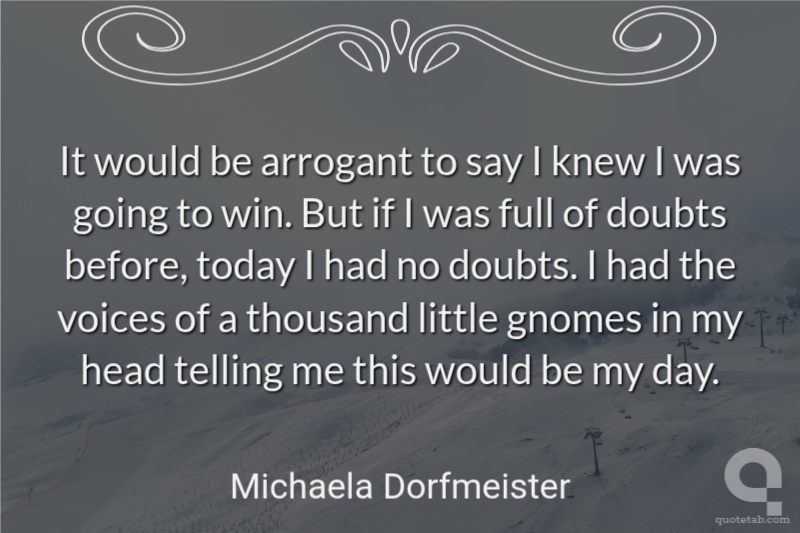 It would be arrogant to say I knew I was going to win. But if I was full of doubts before, today I had no doubts. I had the voices of a thousand little gnomes in my head telling me this would be my day.