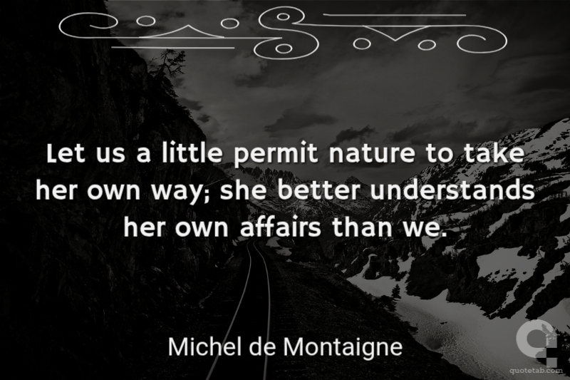 Let us a little permit nature to take her own way; she better understands her own affairs than we.