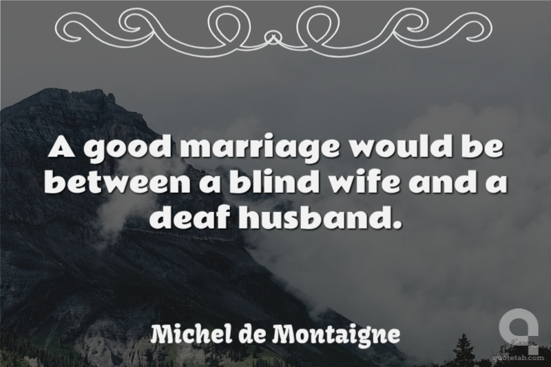 Marriage has, for its share, usefulness, justice, honour, and constancy; a stale but more durable pleasure. Love is grounded on pleasure alone, and it is indeed more gratifying to the senses, keener and more acute; a pleasure stirred and kept alive by difficulties. There must be a sting and a smart in it. It ceases to be love if it has no shafts and no fire.