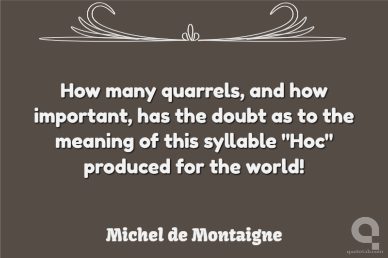 How many quarrels, and how important, has the doubt as to the meaning of this syllable "Hoc" produced for the world!