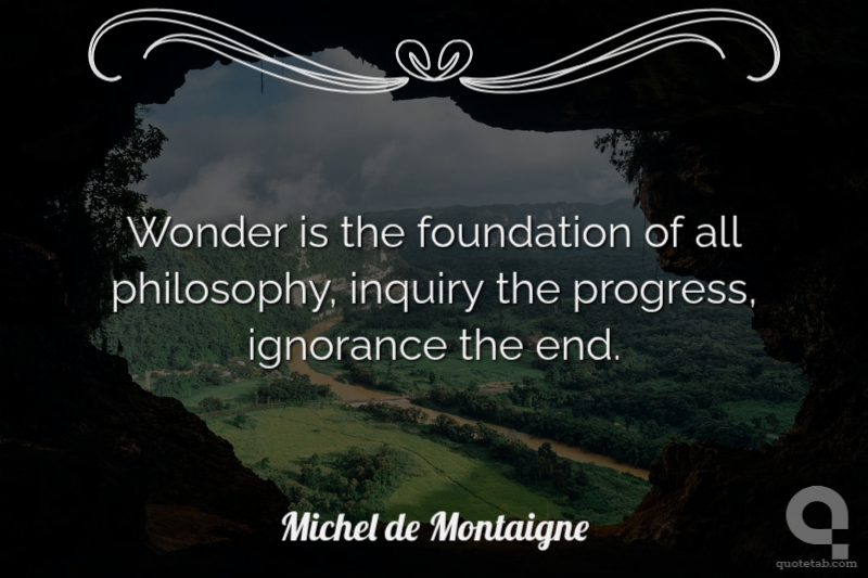 Wonder is the foundation of all philosophy, inquiry the progress, ignorance the end.
