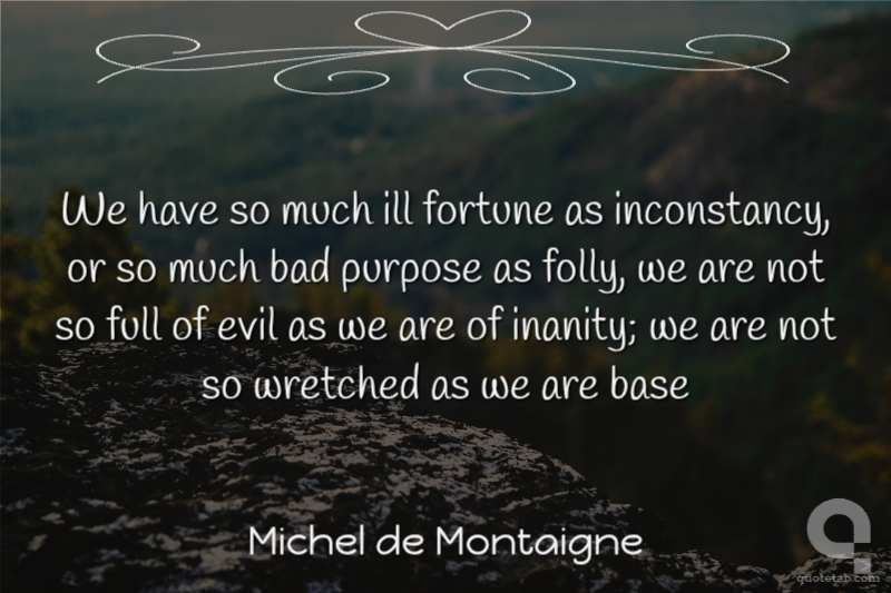 We have so much ill fortune as inconstancy, or so much bad purpose as folly, we are not so full of evil as we are of inanity; we are not so wretched as we are base