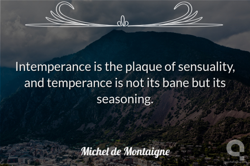 Intemperance is the plaque of sensuality, and temperance is not its bane but its seasoning.