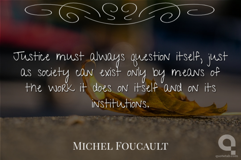 Justice must always question itself, just as society can exist only by means of the work it does on itself and on its institutions.